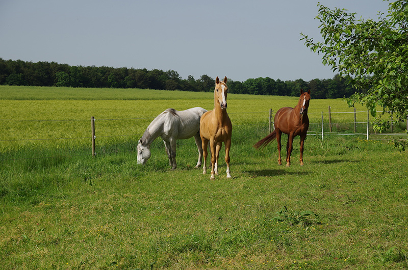 Direkt angeschlossen sind Weideflächen von etwa einem Hektar, auf denen sich die Patienten während Ihrer Genesung bei längeren Aufenthalten die Hufe vertreten können.